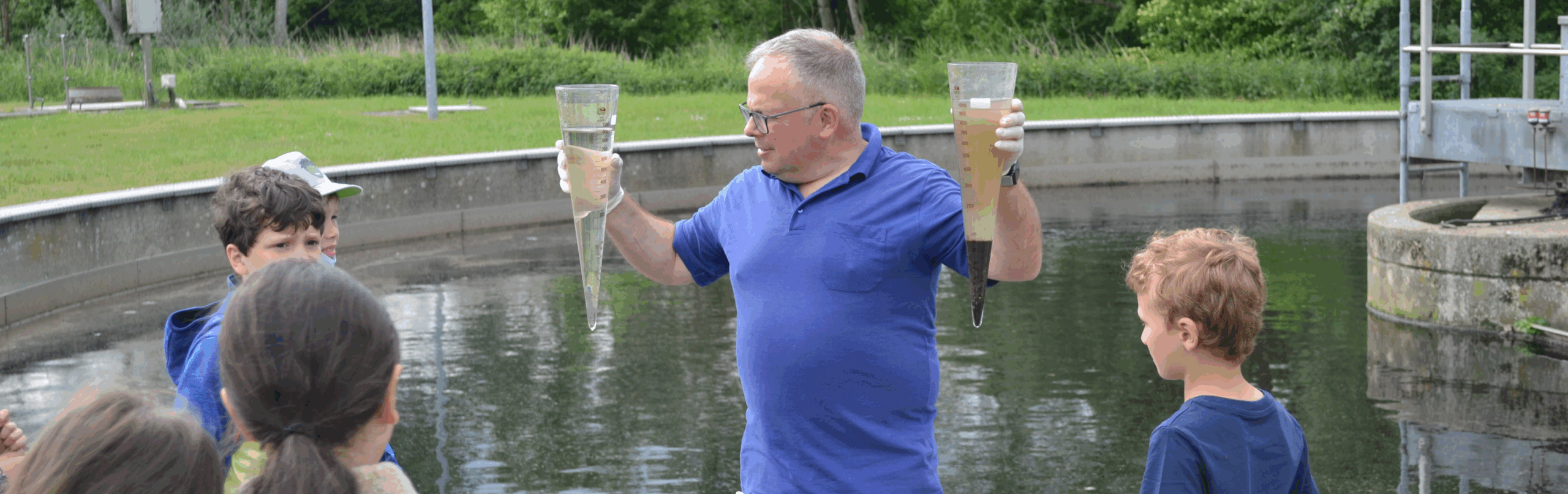 Führungen für Grundschüler im Rahmen der Projekttage übernimmt Carsten Wachtel. Carsten Wachtel kennt sich bestens mit den komplexen Abläufen auf den Kläranlagen aus und versteht es, diese anschaulich und altersgerecht zu erklären.